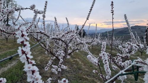 Nell’immagine albicocchi in fiore nelle colline faentine intorno all’11 marzo 2021.